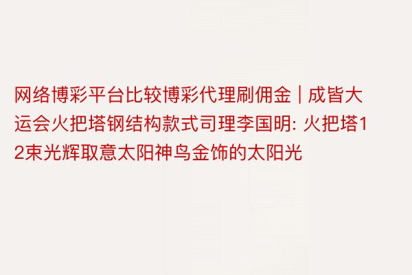 皇冠代理登3他先容,火把塔塔身高度为31米,寓意着“第31届全国大学生夏令通顺会”。“火把塔构造由12束光辉集聚而成,取意金沙行状太阳神鸟金饰上的12谈太阳光辉,光辉螺旋升腾聚积于阳燧,也即是咱们终末聚首点火的场合,这也符号着东进兴川之光,凝华力量的理念。”