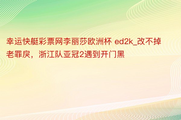 《浙江队亚冠开门黑:未知的畴昔能否闭幕"老罪戾"?》