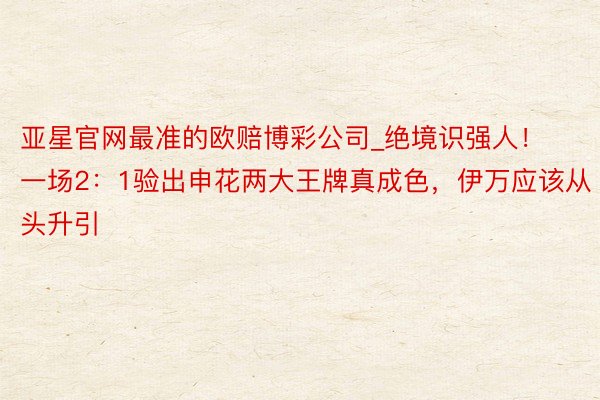 皇冠体育娱乐城不外,这场2:1的比赛,也像一块试金石雷同,验出了上海申花阵中两大功勋宿将能堪大用的委果功力。这两位功勋宿将一个是吴曦,一个是于汉超。本场比赛,在过失工夫,恰是这两位功勋宿将的出色施展,才让上海申花在0:1过时的情况下杀青2:1逆转。