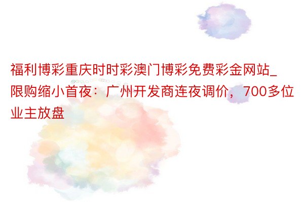 原标题:限购缩小首夜:广州开发商连夜调价,700多位业主放盘