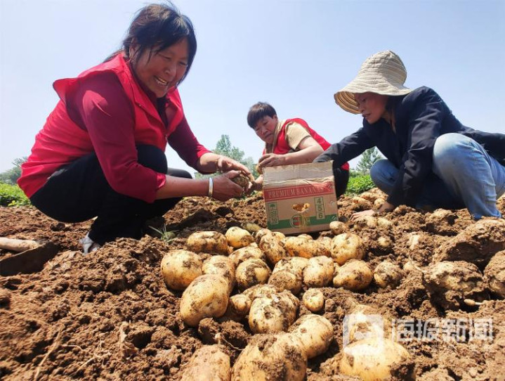 《田间来了“帮工队”》2023年6月6日,郯城县马头镇,党支部通知吴艾青带着党员志愿者匡助陈景玉老东说念主收货土豆。据悉,郯城县马头镇在88个村街党支部开荒了“三夏”分娩共产党员志愿者义务“帮工队”,主动为需要匡助的坚苦家庭相安无事。高军 摄