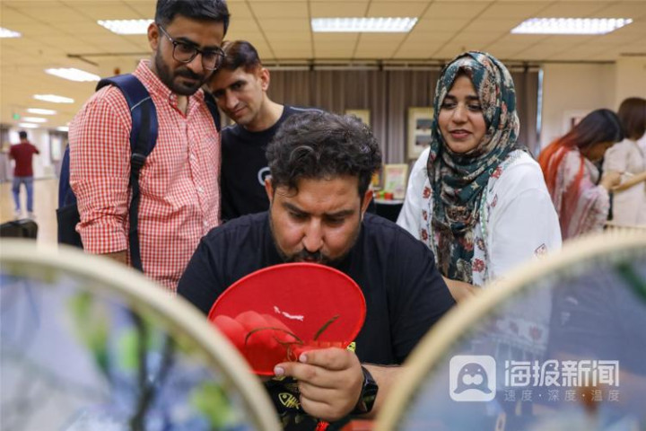 《国际留学生体验中国非遗文化》 2023年6月9日,留学生在山东省青岛市李沧区文化馆体验刺绣。第十八个文化和当然遗产日行将降临,来自俄罗斯、巴基斯坦等国度的21名国际留学生,受邀走进青岛市李沧区文化馆学习体验熏画、刺绣、剪纸等非遗容貌,近距离感受中华传统文化的独有魔力。张鹰 摄