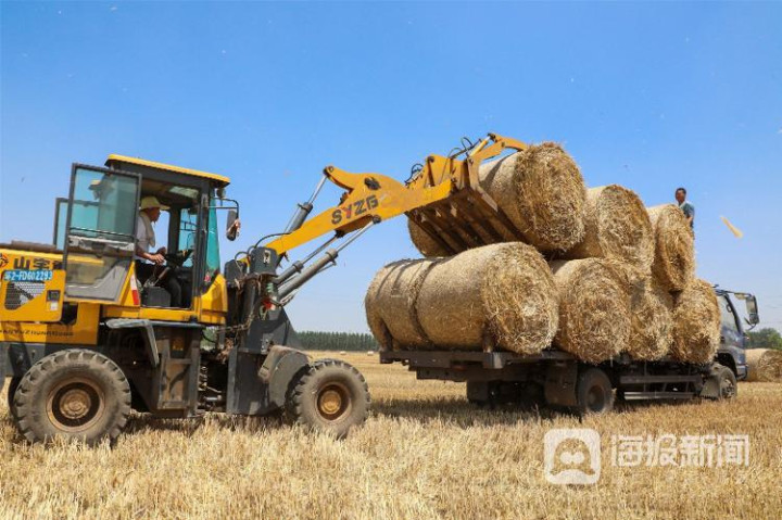 《秸秆变废为宝》2023年6月8日,在山东省滕州市官桥镇车站村,村民将打捆的小麦秸秆装车。麦收时节,滕州市加大小麦秸秆回收力度,对收割的小麦秸秆打捆离田。回收的秸秆用于饲料繁衍、生物资发电等限制,既促进环境保护又加多农民收入。 宋海存 摄