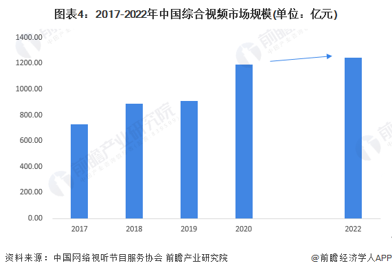 阐发中国采集视听节目劳动协会公布的2021中国采集视听发展考虑解释,2017-2021年中国概括视频阛阓领域合座呈现高涨趋势,2022年中国概括视频阛阓领域为1246.5亿元,较2020年增长4.72%。